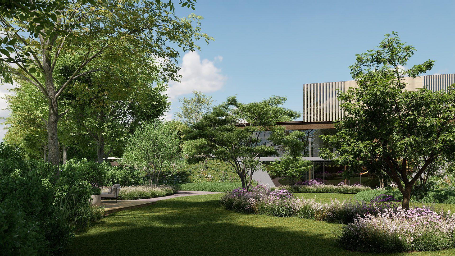 Deze villatuin in Overijssel is uitgewerkt in een 3D-visualisatie waarin het hoogteverschil en de souterrain een duidelijke rol spelen. Het zwembad vormt een ontspannen middelpunt, omgeven door borders met bloembollen en vaste planten die het hele jaar door kleur en variatie geven. Meerstammige bomen zorgen voor structuur en een natuurlijk lijnenspel, waardoor de tuin zowel ruimtelijk als sfeervol oogt.